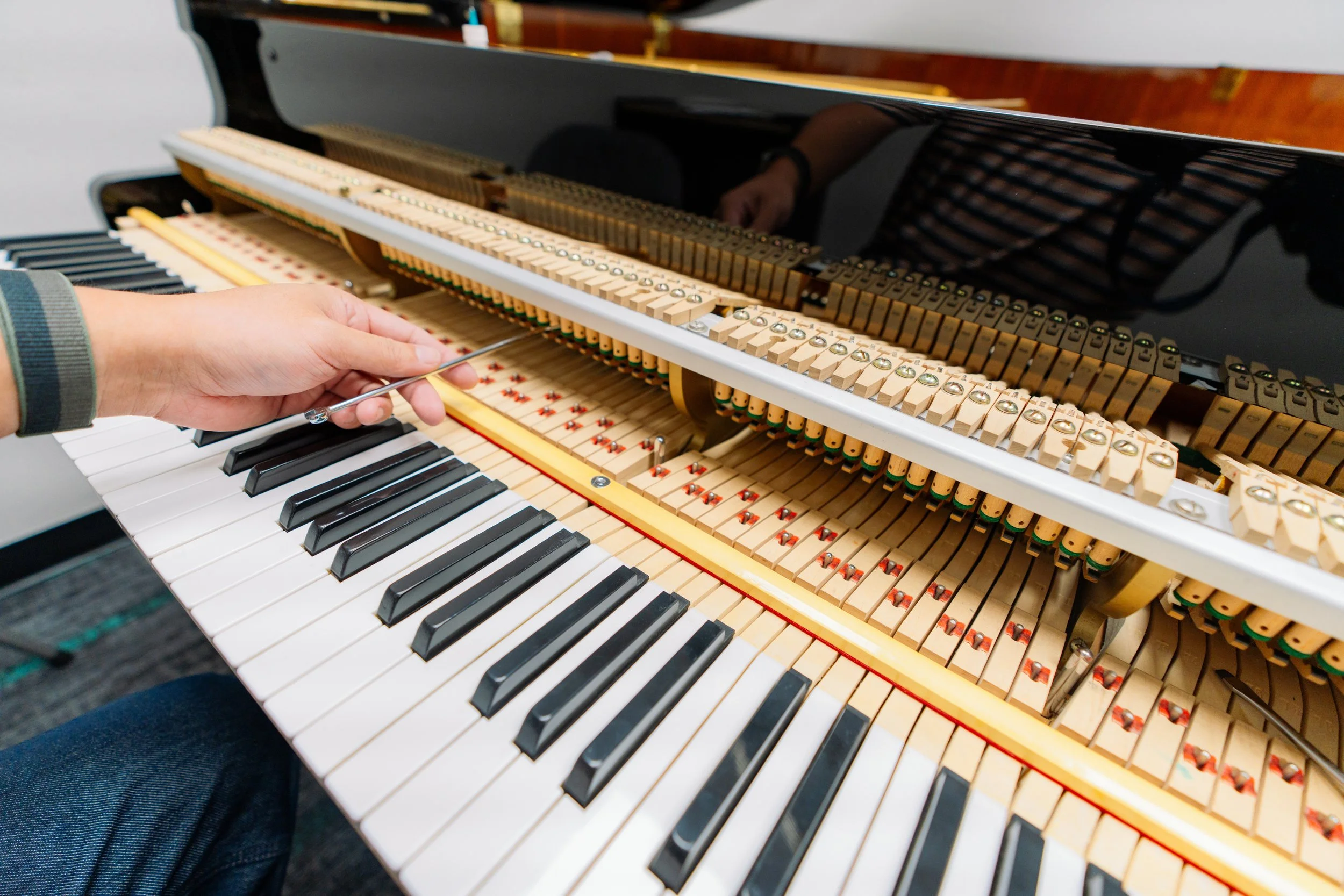 Voicing adjusts the piano’s tone by working on the hammers, making the sound brighter, softer, or more even to match your taste.